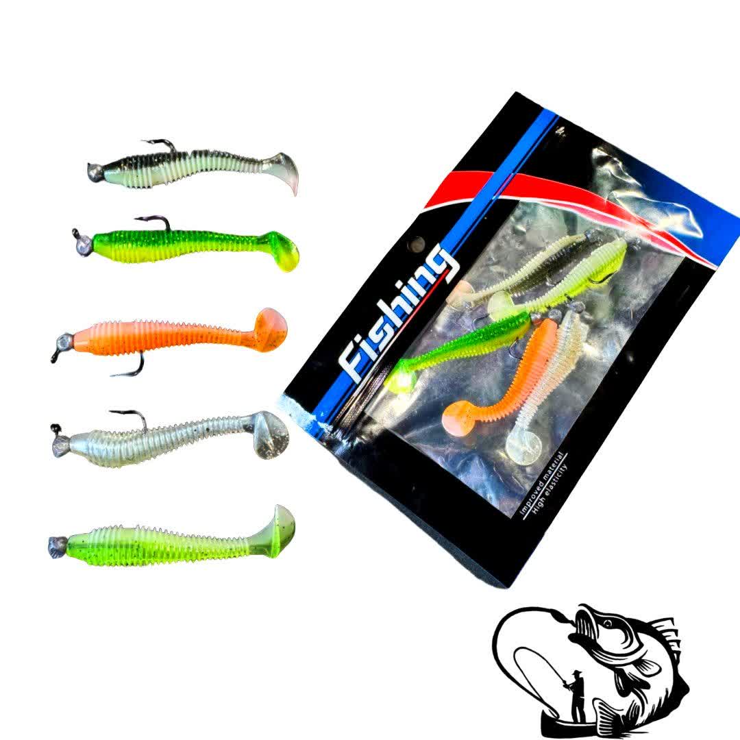 پک 5تایی طعمه ماهی ژله ای دارای قلاب جیگ در 5 طرح رنگی متفاوت و پرکاربرد
